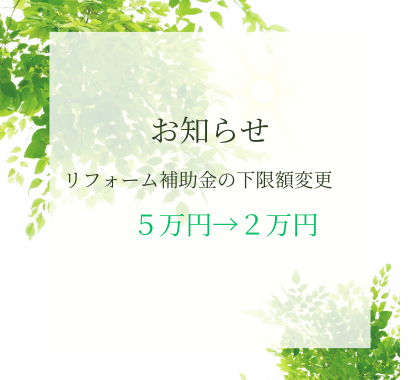 リフォーム補助金の下限額変更について